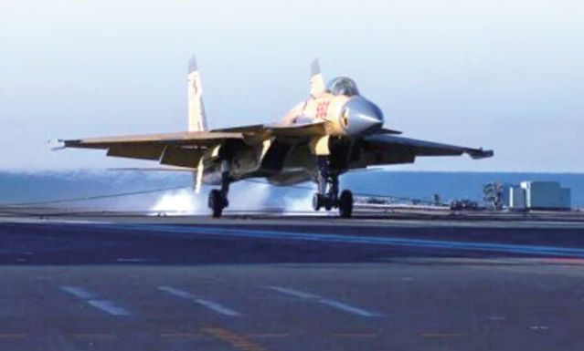 2012年11月23日,中國第一架殲-15艦載飛機在遼寧艦首次成功著艦