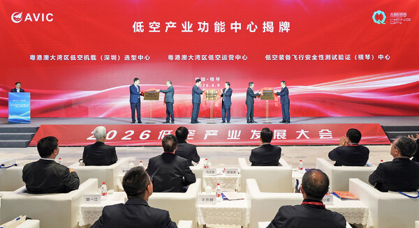 裝備為產(chǎn)業(yè)發(fā)展提供了物質(zhì)載體,而低空產(chǎn)業(yè)的落地需要功能平臺支撐。大會期間,廣東省深圳市南山區(qū)委常委、副區(qū)長夏雷,珠海市委副書記、市長吳澤桐,廣東省橫琴辦主任、橫琴粵澳深度合作區(qū)執(zhí)委會副主任聶新平分別與航空工業(yè)集團相關單位負責人一起,為粵港澳大灣區(qū)低空機載(深圳)選型中心、粵港澳大灣區(qū)低空運營中心、低空裝備飛行安全性測試驗證(橫琴)中心揭牌。三個中心的成立,標志著航空工業(yè)集團與廣東省的合作結出了新成果,將在機載系統(tǒng)選型適配、低空運營服務、飛行安全驗證等核心環(huán)節(jié),為低空產(chǎn)業(yè)發(fā)展提供專業(yè)化、體系化平臺支撐。